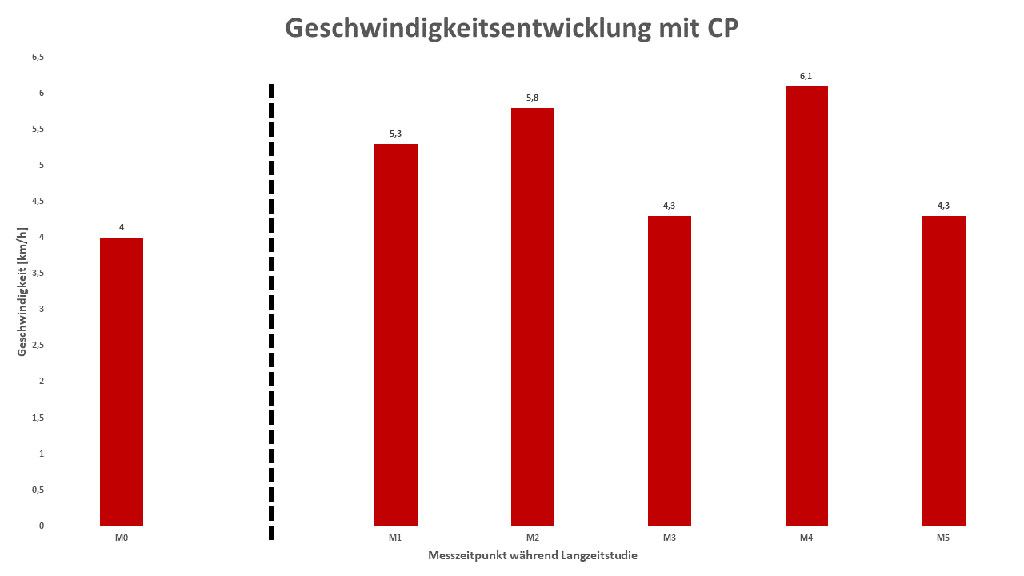 Im Rahmen der Langzeitstudie kam die Probandin P3 zunehmend besser mit der Prothese zurecht, was in einem annähernd physiologischen Gangbild resultierte. Jedoch entwickelte sich auch ein kleiner Teil der Auswertungsparameter leicht negativ, was entweder auf eine schlechte Tagesform oder auf die über die Jahre angeeignete schlechte Körperbiomechanik zurückgeführt werden kann. Der physiotherapeutische Teil der Langzeituntersuchung schließt sich an die Ergebnisse aus TS1 an und belegt, dass die CP gegenüber der SP deutliche Vorteile bietet.