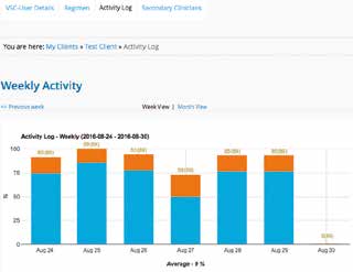 Der Behand­ler kann die Dau­er ein­stel­len, für die der Nut­zer in der jewei­li­gen Hal­tung blei­ben soll­te (Abb. 3a), sowie die Anzahl der Erin­ne­run­gen dazu, wie oft pro Stun­de die Hal­tung geän­dert wer­den soll­te. Der Plan wird cloud­ba­siert an die VSC-App des Nut­zers über­tra­gen, die auf ein Smart­phone oder Tablet her­un­ter­ge­la­den wer­den kann. Der The­ra­peut und der Nut­zer sind die ein­zi­gen, die Zugriff auf die gesi­cher­ten Daten haben. Der Her­stel­ler und die Uni­ver­si­tät Pitts­burgh stel­len nur anony­me Roh­da­ten zur Ver­fü­gung. Der Nut­zer wird visu­ell und akus­tisch (Abb. 3b) dar­an erin­nert, den vom Behand­ler kon­fi­gu­rier­ten Plan ein­zu­hal­ten. Die App unter­stützt den Nut­zer dabei, die emp­foh­le­ne Posi­ti­on (Abb. 3c) ein­zu­neh­men. Behand­ler und Nut­zer kön­nen Aus­füh­rung und Com­pli­ance anhand des kon­fi­gu­rier­ten Plans ver­fol­gen und anhand die­ser Infor­ma­tio­nen bespre­chen, wie die Funk­tio­nen im täg­li­chen Leben genutzt wer­den (Abb. 4 u. 5).