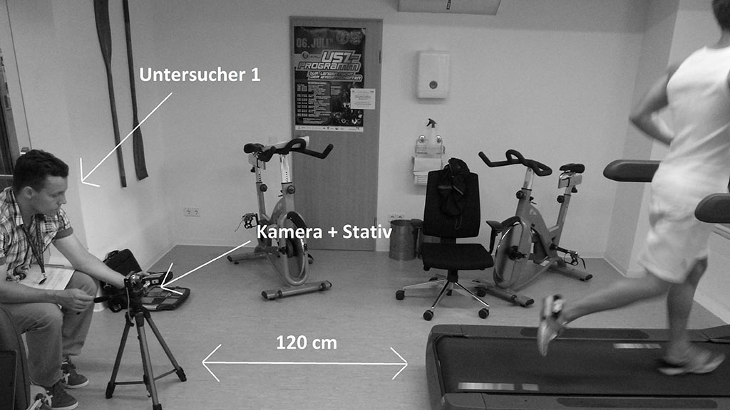 Vier Versuche (8, 12, 16, 20 km/h) wurden mittels Video dokumentiert, um eine Beurteilung und Kategorisierung der Laufstile vornehmen zu können. Auf die diesbezüglichen Ergebnisse soll im Rahmen dieses Beitrags nicht eingegangen werden.
