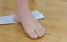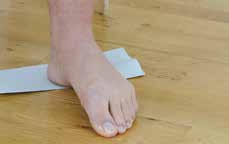 „Sitzen Sie auf einem Stuhl und legen Sie die Zehenkuppen auf ein kleines Brettchen oder ein dünnes Buch. Drücken Sie die Zehenbeeren ohne Krallen der Zehen auf das Brettchen. Dabei hebt sich der Mittelfußbereich leicht ab. Lösen Sie die Spannung wieder, sodass sich der Fuß wieder senkt“ (Abb. 7 u. 8).