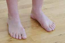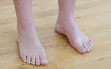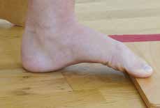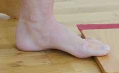 „Stehen Sie frei im Raum, mittig auf beiden Füßen. Stellen Sie sich vor, den Kopf zur Decke und die Fersen in den Boden zu schieben. Jetzt beide Großzehenballen aktiv über Muskelkraft gegen den Boden schieben und die Fersen aktiv aufrichten. Beachten Sie, dass der Unterschenkel und das Knie bei der Ausführung nicht nach außen gedreht werden, sondern sich nur der Fuß aufrichtet. Ihr Gewicht bleibt mittig auf dem Fuß und fällt nicht nach hinten“ (Abb. 3 u. 4).