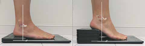 Bei einem Extensionsdefizit im OSG liegt eine Bewegungseinschränkung des OSG in Dorsalextension vor. Steht der Fuß in diesem vergrößerten OSG-Winkel vollflächig und ohne Ausgleich auf einem ebenen Untergrund, resultiert daraus eine Überstreckung im Kniegelenk. Wird in dieser Position ein Gipsnegativ erstellt, ist ein physiologischer Unterschenkel-Boden-Winkel in der späteren Orthese ohne einen entsprechenden Beinlängenausgleich nicht realisierbar (Abb. 5). Bei einem Extensionsdefizit im OSG ist es daher notwendig, eine vorhandene Beinlängendifferenz bereits vor der Gipsnegativerstellung in die Versorgungsplanung mit einzubeziehen. Wird der Gipsabdruck darüber hinaus ohne Berücksichtigung des Kniewinkels erstellt, kann daraus eine vermehrte Überstreckung im Knie resultieren. Folgende vermeintliche Korrekturmaßnahmen sind in der Praxis gängig; in beiden Fällen ist ein äquivalenter Ausgleich der kontralateralen Seite obligatorisch: