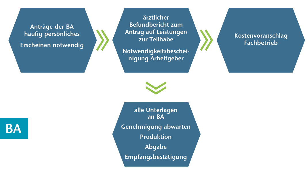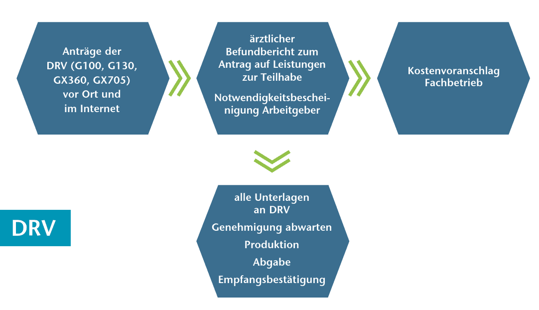 Gut organisierte Fachbetriebe jedoch helfen dem Kunden als Dienstleistung bei der Antragstellung. Die notwendigen Anträge gibt es von der Rentenversicherung auch im Internet. Diese Dienstleistung setzt zwar sehr gut geschultes Personal sowie Disziplin und Übersicht beim Ablauf voraus, bietet aber den Vorteil der gesamten Kontrolle über die Versorgung und ist ein perfekter Service am Kunden.