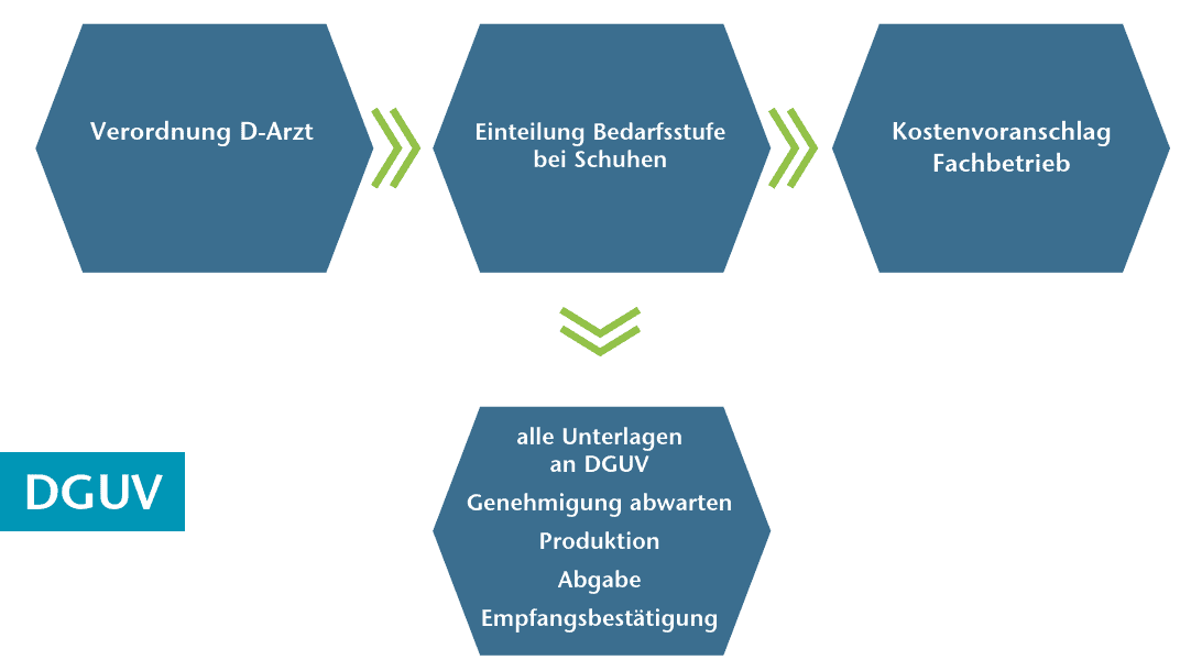 Sollte der Antrag abgelehnt werden, muss der Versicherte selbst Widerspruch einlegen. Besonders aufmerksam muss man beim erforderlichen ärztlichen Befundbericht sein: Dieser muss sehr ausführlich sein und einen besonderen Hinweis darauf enthalten, dass z. B. ohne orthopädische Einlagen der Beruf nicht ausgeübt werden kann. Beispielsweise reicht der alleinige Hinweis auf einen Knick- Senk-Fuß nicht aus. Eine Krankheit im Sinne der gesetzlichen Krankenkasse ist keine Behinderung im Sinne der beruflichen Rehabilitation. Die Abrechnung mit der DGUV sieht zwingend einen Beitritt zum bundesweiten Vertrag vor.
