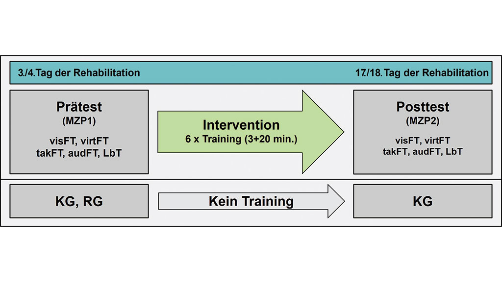 In diesem Beitrag liegt der Fokus auf dem auditiven Feedbacktraining (audFT) und dem Einsatz von IMU-Sensoren, was in der Folge näher beschrieben wird. Zur Auswertung und Einschätzung der Ergebnisse werden die anderen IGs und die KG mit betrachtet.
