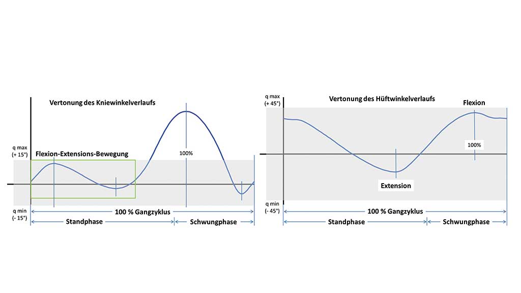 Nach Knie-TEP hingegen ist primär die defizitäre Flexions-Extensions-Bewegung im Kniegelenk in der vortriebswirksamen Standphase zu adressieren, während die unbelastete Vorschwungphase, die durch eine deutliche Kniebeugung gekennzeichnet ist, von untergeordneter Bedeutung ist (Abb. 2) 28 29.