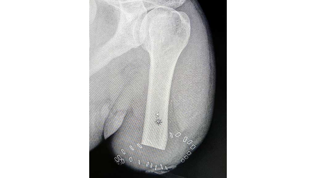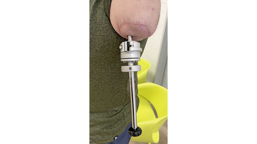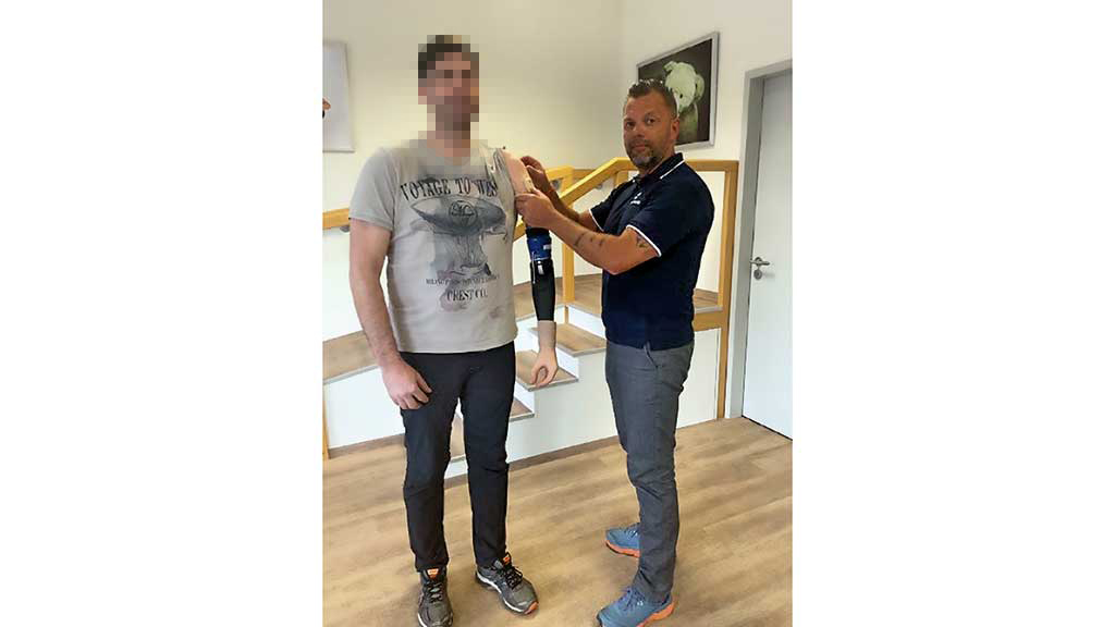 Für diese Variante muss unter anderem das Skelett des Patienten ausgewachsen sein; zudem ist eine Humerus-Mindestlänge von 8 cm notwendig. Beim hier vorgestellten Patienten war diese Vorgabe gegeben; seine Humeruslänge entspricht genau dieser vorgegebenen Mindestlänge. Ziel war es, eine hochfunktionale Prothese und eine entsprechende Prothesenansteuerung zu erreichen, gepaart mit einer einfachen Handhabung für den Anwender in seinem Alltag.