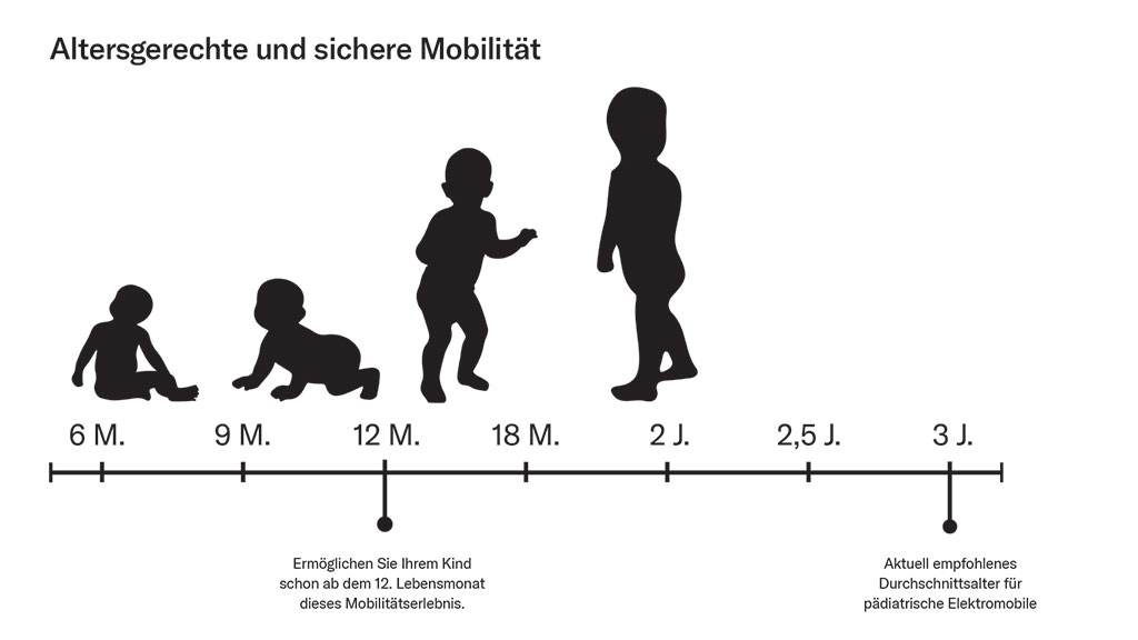 Jeder dieser Schritte ist die Voraussetzung dafür, dass das Kind den nächsten der genannten Schritte erreicht (z. B. krabbeln Babys erst, nachdem sie sitzen können usw.). Dabei zeigen Studien auf, dass die Mobilität für Kinder ein innewohnendes Grundbedürfnis ist2, unabhängig von der Behinderung bzw. Einschränkung.