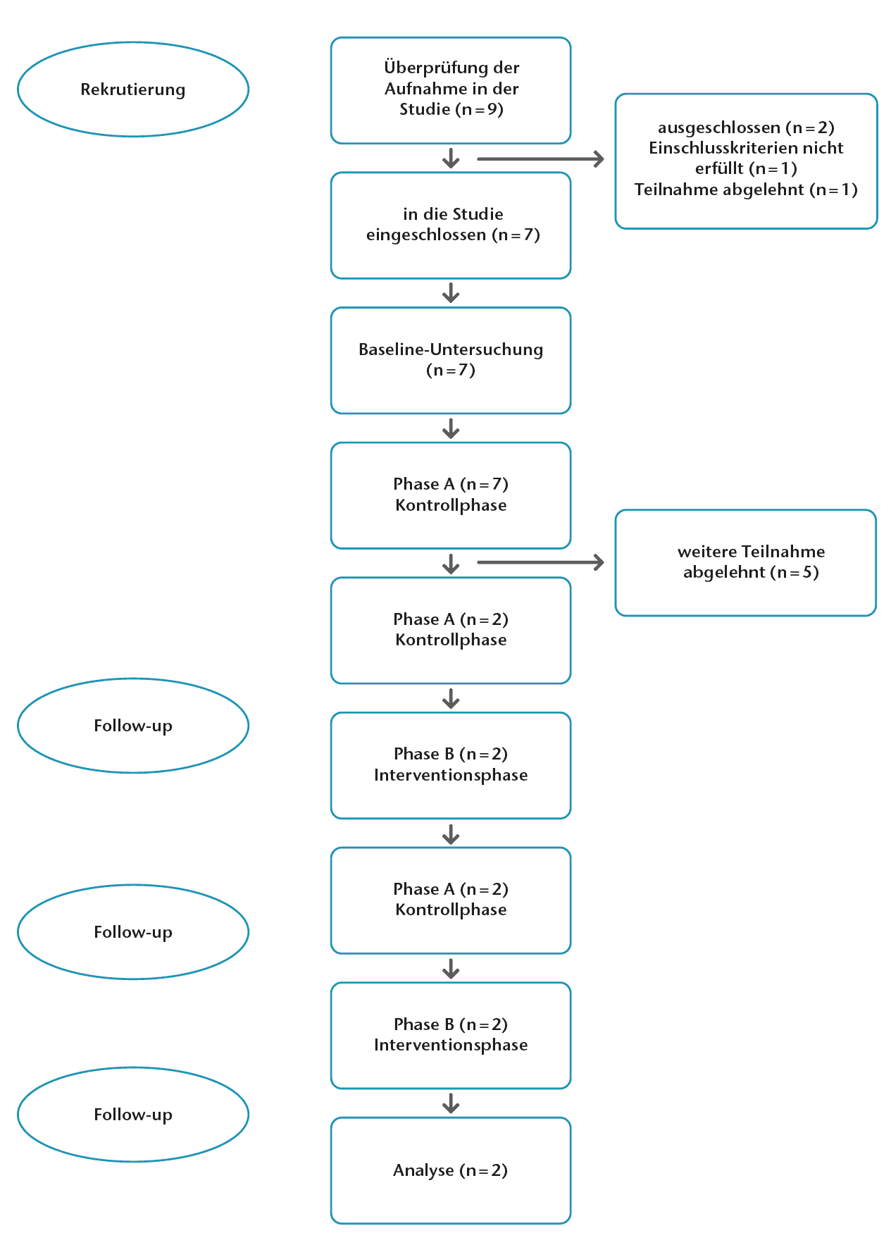 In dieser Studie wurde ein Zeitreihendesign (A‑A-B-A‑B) unter kontrollierten Bedingungen angewendet, um die Auswirkungen eines E‑RS-Trainings bei Kleinkindern mit ZP zu untersuchen und zu bewerten 12.