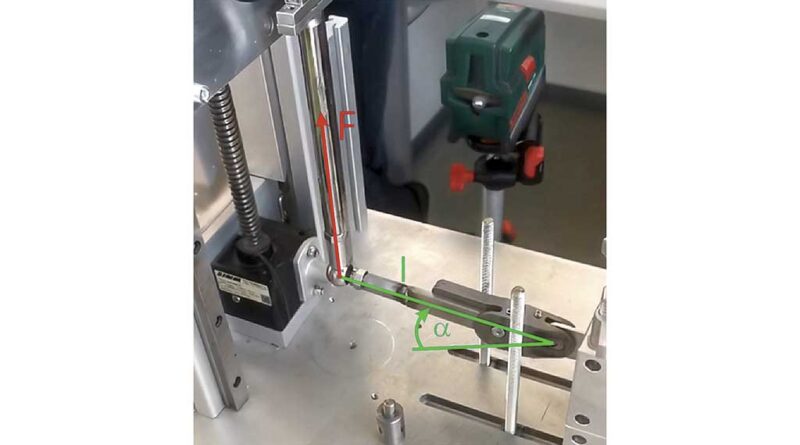 Um das mecha­ni­sche Ver­hal­ten des neu ent­wi­ckel­ten Blatt­fe­der­ge­lenks zu bewer­ten und mit den am Markt ver­füg­ba­ren Kon­zep­ten zu ver­glei­chen, wur­den trans­la­to­ri­sche Mes­sun­gen ent­lang der sagit­ta­len Bewe­gungs­ebe­ne durch­ge­führt. Hier­für wur­de ein spe­zi­ell für die Kali­brier­prü­fung von Orthe­sen­ge­len­ken ent­wi­ckel­ter Prüf­stand ein­ge­setzt (Abb. 11).