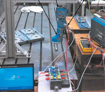 Nach Verifikation des Motors ist das Gesamtsystem im Verbund zu untersuchen. Hierzu ist ein Prothesenprüfstand notwendig (Abb. 3). Auf diesem wird die Prothese mit einer Arbeitsmaschine gekoppelt, so dass der Gangzyklus simuliert und die Eigenschaften der mechanischen Komponenten sowie die Geräuschentwicklung der Prothese bestimmt werden können. Die beiden Antriebe werden mittels CAN-Schnittstelle mit einer intelligenten Einheit verbunden, welche die entsprechenden Sollwerte für die jeweilige Regelung der Antriebe zur Verfügung stellt. Auf diese Weise besteht die Möglichkeit, unterschiedliche Randbedingungen vorzugeben, indem die aus entsprechenden Ganganalysen (Gehen auf gerader oder schiefer Ebene, Treppensteigen, Laufen) hervorgehenden Sollwerte an Prothesenantrieb und Arbeitsmaschine übernommen werden.