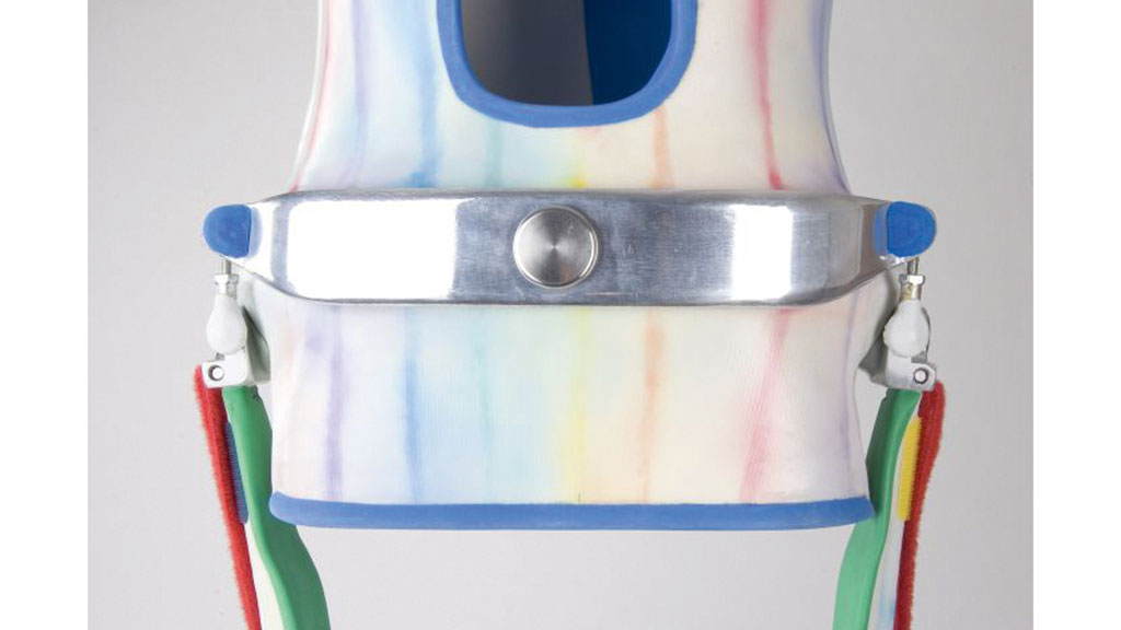 Gefertigt werden diese aus PE oder Acrylharz mit einer Polsterung. Die erste Möglichkeit für diese Kinder, sich im senkrechten Zustand in einem begrenzten Raum selbstständig fortzubewegen und ein erstes Gefühl für den Raum zu erhalten, bietet der Go-LiTe (Abb. 18). Der Go-LiTe ist die Weiterentwicklung der vorhandenen Swivelwalkersysteme. Er wird komplett aus Carbonfasern gefertigt; dadurch wird eine deutliche Gewichtsersparnis zu vergleichbaren Systemen erreicht. Zusätzlich wurde der Schwerpunkt tiefer gesetzt, um Stabilitätssicherheit zu erreichen. Als Orthese wird eine beckenhohe, statische Orthese verwendet.