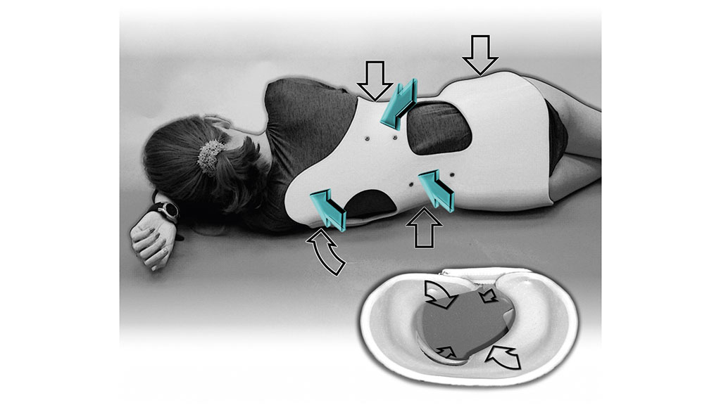 Das „Dresdner Night-Time-Brace“ ist im Gegensatz dazu eine moderne derotierende Skolioseorthese mit allen Komponenten, die von modernen Chêneau-Orthesen her bekannt sind; es wird lediglich auf den liegenden Körper maßgenommen und unter Berücksichtigung der geänderten Wirkungsrichtung der Schwerkraft angepasst 15.