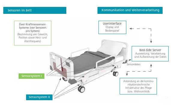 Um z. B. eine Schlafanalyse durchzuführen oder um das Dekubitus- oder Sturzrisiko zu ermitteln, wurde ein System zur Erkennung der Körperlage und der Aktion einer Person im Pflegebett entwickelt. Viele Ansätze zur Sturzprävention basieren auf einer bildgestützten Analyse unter Verwendung von Videokameras, die die Bewegungen der Person in dem Bett aufzeichnen. Diese Art des Monitorings stellt jedoch einen Eingriff in die Privatsphäre des Nutzers dar und wird daher zunehmend kritisch gesehen. Andere Arbeiten zur Ableitung der Körperlage oder zur Einschätzung des Dekubitusrisikos verwenden druckempfindliche Matten im Bett, die aus hygienischen Gründen nicht optimal sind. Weiterhin besteht die Gefahr eines Verrutschens der Matte und einer daraus resultierenden fehlerhaften Detektion.