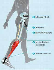 - grundlegend positiv auf elektrische Oberflächenstimulation des N. peroneus communis reagieren und die motorische Reaktion auf die Stimulation final zu einem verbesserten Gang führt.