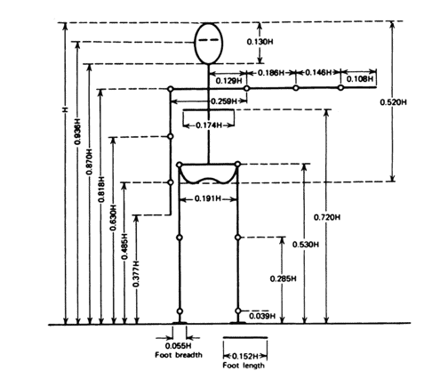 Mittels einer Verhältnisrechnung (Abb. 4; Tab. 2), basierend auf Körpergröße und ‑gewicht der in die Simulation eingeschlossenen Probanden, wurden die entsprechenden Segmentlängen und ‑massen des jeweiligen Modells probandenspezifisch angepasst. Die Schulterpartie stellt eine besondere Problemzone für Rollstuhlfahrer dar 20 21 22 23 24 25 26. Daher wurde im Rahmen der Simulation ein Augenmerk auf die auftretenden Belastungen in diesem Gelenk gelegt.