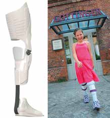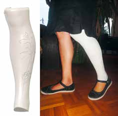 Geringfügige Stellungsänderungen können auch nach der Fertigstellung des Hilfsmittels durch Auswechseln von Kleinteilen reproduzierbar durchgeführt werden. Ein individuelles, modernes Design kann dazu beitragen, die beim Baden immer sichtbare Prothese ansprechender aussehen zu lassen. Durch den Einsatz von Oberflächenscannern kann die äußere Formgebung einer kompletten Prothese oder von Kosmetik-Covern nach dem Abbild der erhaltenen Extremität geschaffen werden (Abb. 6).