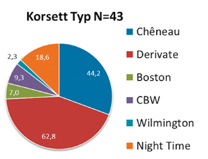 Die aktuelle Literaturlage zur KorsettTechnik in Deutschland ist schwach. Wissenschaftliche Studien über Langzeitergebnisse oder gar konkrete biomechanische Konstruktionsprinzipien sind rar. Die per Literaturrecherche ermittelten Arbeiten 21 22 23 beschreiben Korsett-Typen, die von der mittels Fragebogen interviewten Gruppe gar nicht oder nur vereinzelt genutzt werden.