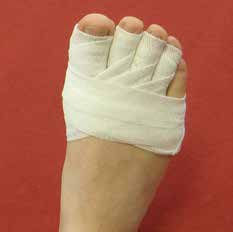 Kompressionsverbände können für verschiedene Indikationen mit unterschiedlichen Anlagetechniken und Materialkombinationen hergestellt werden. Ein aktuelles Review der Cochrane Collaboration wertet mehrere Studien zur Wirksamkeit von Kompressionsverbänden in Bezug auf das Abheilen venöser Ulzerationen aus und kommt zu dem Schluss, dass venöse Ulzerationen mit Kompressionstherapie besser heilen als ohne, dass Mehrlagenverbände besser als Einlagenverbände sind und dass spezielle 4‑Lagen-Verbände zu einer schnelleren Heilung führen als gewöhnliche Kurzzugverbände 16. Zu berücksichtigen ist dabei jedoch, dass in den 4‑Lagen-Verbänden spezielle, sehr dünne Langzugbinden verwendet werden, die so in Deutschland nicht erhältlich sind. Alternativen dazu bieten industrielle Kompressionssysteme. In der Regel werden in Deutschland als „Basisverband“ Mehrlagenverbände mit Kurzzugbinden (Abb. 7) empfohlen, obwohl diese bei immobilen Patienten nicht in jedem Fall den größtmöglichen Effekt erzielen, dafür jedoch das höchste Maß an Sicherheit für den Patienten bieten. Da bei Lymphödemen auch die Zehen ödematös geschwollen sein können, werden sie bei der lymphologischen Kompressionstherapie mit eingebunden (Abb. 8).Sowohl für Verbände bei lymphatischer als auch venöser Indikation gibt es grundlegende Komponenten, die nachfolgend besprochen werden.