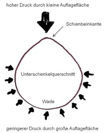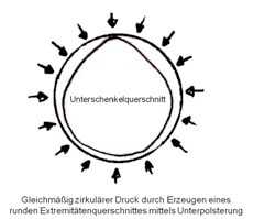- Voraussetzung für die zirkulär gleichmäßige Druckverteilung durch Schaffung eines runden Querschnittes der Extremität (vgl. die Ausführungen zur Kompressionstherapie oben)