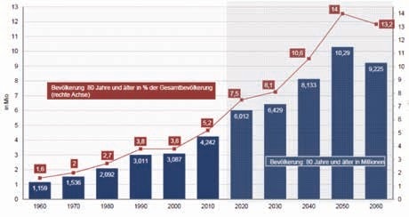 - Universität Duisburg-Essen, Institut Arbeit und Qualifikation. Bevölkerung im Alter 80 Jahre und älter 1950–2060. Zahl und Anteil an der Gesamtbevölkerung. http://www.sozialpolitik-aktuell.de/tl_files/sozialpolitik-aktuell/_Politikfelder/Bevoelkerung/Datensammlung/PDF-Dateien/abbVII-I1d.pdf (Zugriff am 17.11.2017)
