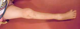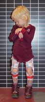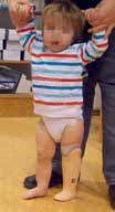- Ab Januar 2011, im Alter von 24 Monaten, beginnt die Herstellung dynamischer Orthesen mit sukzessiver Freigabe der Beweglichkeit in den Kniegelenken mittels Gasdruckfedern.