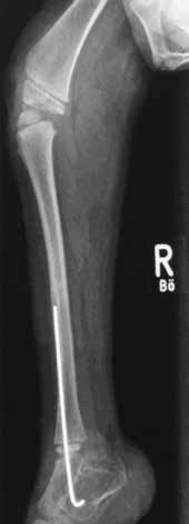 - Im Mai 2013 wird der K‑Draht entfernt und eine Pseudarthroseanfrischung sowie eine Osteotomie der tibiofibularen Synostose durchgeführt.