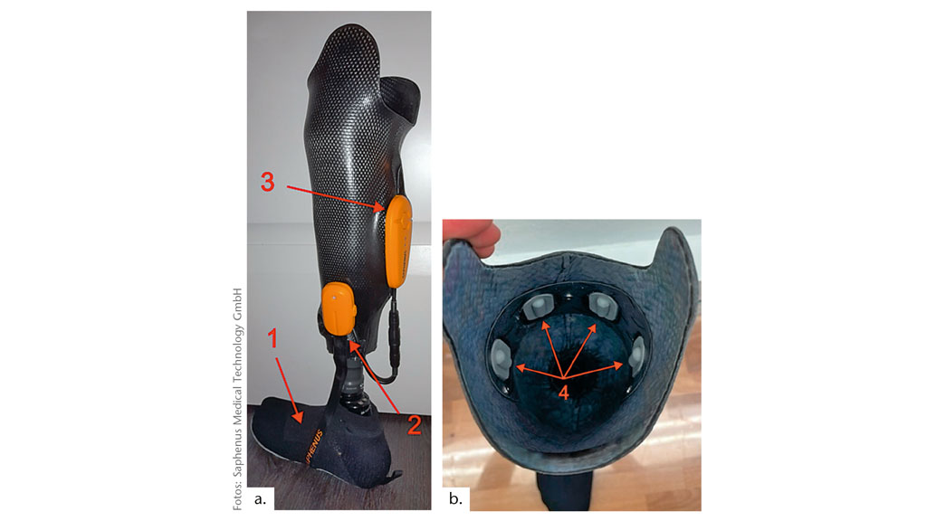 Das kommerziell erhältliche, nicht-invasive, gangsynchronisierte, mikroprozessor-gesteuerte, vibrotaktile Feedbacksystem Suralis der Firma Saphenus verschlüsselt Druck der Fußsohle in Vibration auf definierte Hautareale, um so sensorische Informationen an periphere Hautrezeptoren und das Gehirn über die amputierte Gliedmaße zurückgeben. Das System besteht aus einer Sensorsocke, einer Sender- und einer Aktuatoreinheit (Abb. 1).