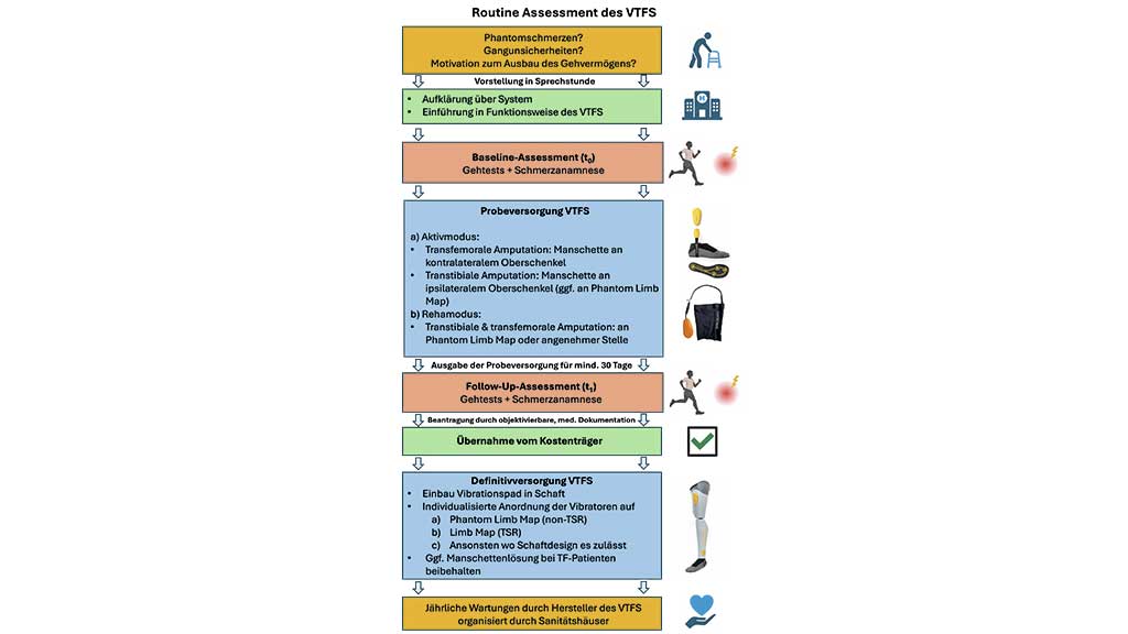 Die gangsynchronisierte, vibrotaktile Stimulation hat bereits in der Probeversorgung einen positiven Effekt auf relevante Gehparameter von sowohl TSR- als auch Non-TSR-Patienten gezeigt, besonders bei Patienten mit Gangunsicherheiten60 61 62. Um diese neue Technologie für Betroffene besser zugänglich zu machen und um weitere Effekte, wie Langzeiteffekte, Effekte auf amputationsassoziierte Schmerzen und biomechanische Effekte, zu untersuchen, sollten eine Registerarbeit und ein Standardprotokoll im Rahmen einer multizentrischen Studie etabliert werden.