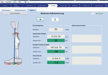 Durch eine ver­bes­ser­te Kon­trol­le über das Sys­tem lässt sich der sta­ti­sche Auf­bau für den Anwen­der opti­mie­ren. Die Objek­ti­vie­rung der wir­ken­den Boden­re­ak­ti­ons­kraft über das L.A.S.A.R. Pos­tu­re ermög­licht es, die Sta­tik im Hin­blick auf eine phy­sio­lo­gi­sche Belas­tungs­si­tua­ti­on ein­zu­stel­len 10 (Abb. 17). Eine Aus­kunft über die hori­zon­tal wir­ken­den Kräf­te ist im Moment nur beim Ein­satz eines Geni­um-Knie­sys­tems mög­lich (Abb. 18). Wich­tig sind die­se Infor­ma­tio­nen den­noch auch bei ande­ren ein­ge­setz­ten Pass­tei­len, da nur so eine qua­li­ta­ti­ve Bewer­tung vor­ge­nom­men und indi­vi­du­el­le Kör­per­hal­tun­gen und Kom­pen­sa­ti­ons­me­cha­nis­men ver­mie­den wer­den können.