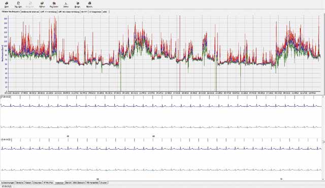 Textilien ermöglichen es, durch die Messung von Vitalparametern Notsituationen zu erkennen. So wird beispielsweise bei ungewöhnlichem Herzrhythmus automatisch ein Notruf abgesetzt (Abb. 4 u. 5). Die intelligenten Textilien sollen auch dafür sorgen, dass sich der Nutzer auch außerhalb der Wohneinheit sicher fühlen kann. Insbesondere ältere Personen, bei denen keine Mobilitätseinschränkungen bestehen, können außerhalb der Wohnung von diesem System profitieren. Die sensorischen Funktionen erfassen die Vitalparameter Herzschlag (EKG) und Atmung sowie die Aktivität und Gefährdungen durch potenzielle Sturzereignisse mit Beschleunigungssensoren. Eine am Körper in der Unterbekleidung getragene Elektronik erfasst, speichert und wertet diese Signale aus, bevor sie an die Alarmierungsschnittstelle weitergegeben werden. Stürze, Unregelmäßigkeiten in der Atmung oder Herzrhythmusstörungen können dadurch erkannt und unmittelbare Hilfsmaßnahmen eingeleitet werden.