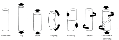 Biege- und Torsionsbelastungen, zwei der in Abbildung 1 gezeigten Belastungsformen, werden durch Drehmomente hervorgerufen und treten in der Regel an den Gelenken – unter anderem der unteren Extremität – während alltäglicher oder sportlicher Aktivitäten auf. Ein Moment ist physikalisch als das Produkt aus der wirkenden Kraft und der Länge des Hebelarms definiert. Das Moment verändert sich, wenn entweder die Kraft kleiner oder größer wird oder die Länge des Hebelarms sich verändert.