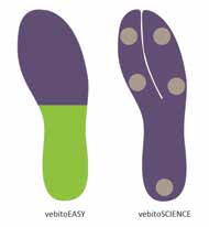 Die vebito-Messsysteme gibt es in zwei unterschiedlichen Ausführungen, die sich sowohl durch Anzahl und Art der Sensoren als auch durch die Komplexität der Software unterscheiden. Das System „vebitoEASY“ misst die Biegebelastung an Vor- und Rückfuß; „vebitoSCIENCE“ erfasst die Biege- und Torsionsbelastung an der Ferse, den Zehengrund- und ‑endgelenken (Abb. 3). Die in diesem Artikel vorgestellten Daten sind mit „vebito SCIENCE“ (oder einem Prototyp des „vebitoSCIENCE“) ermittelt worden.