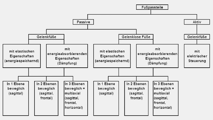 Prothesenfüße unterteilen sich grundsätzlich in aktive und passive, wobei passive weiter unterteilt werden in (Abb. 1) 2: