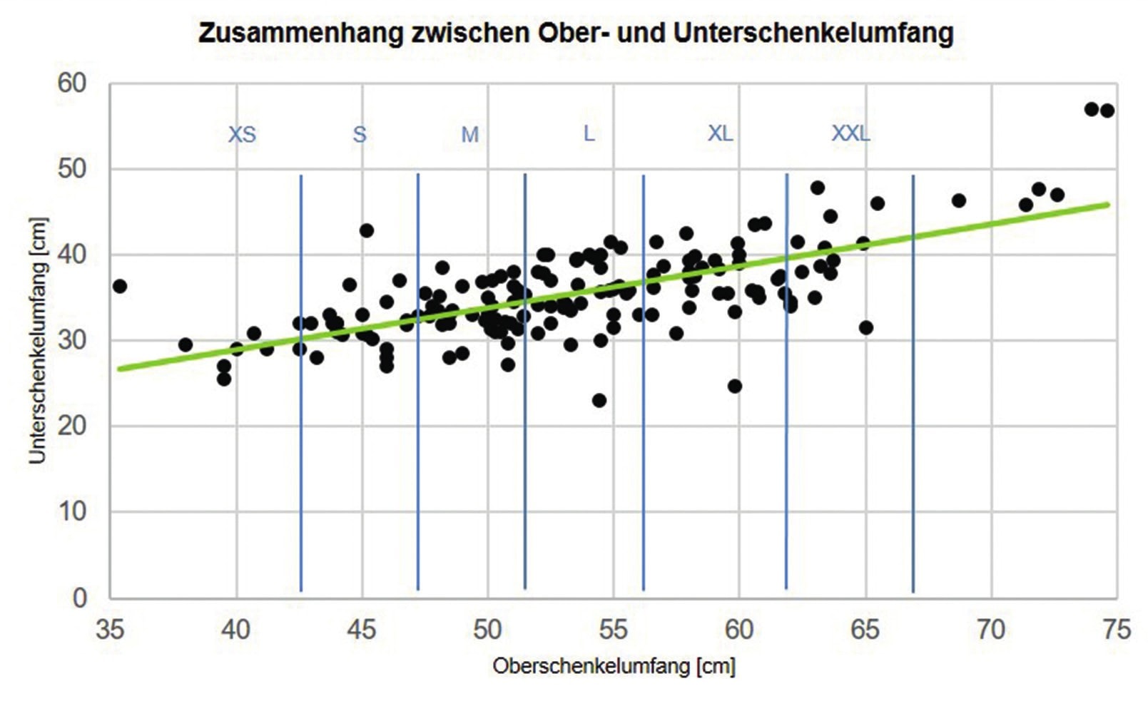 Standard-Hartrahmenorthesen, die in vorkonfektionierter Form in verschiedenen Größenabstufungen angeboten werden, gehen von einem normativen Größenverhältnis zwischen Ober- und Unterschenkelumfang aus. Diese Annahme mindert aber nicht nur die Formschlüssigkeit zwischen Orthese und Schenkel, sondern führt bei Abweichungen vom normativen Zusammenhang gleichzeitig zur Inkongruenz der Gelenkachsen, die es zu vermeiden gilt (Abb. 1). In einer Untersuchung der Ruhr-Universität Bochum (RUB) wurde aus diesem Grund das normative Verhältnis zwischen Unter- und Oberschenkelumfängen analysiert. Zur Feststellung des Größenverhältnisses wurde eine Studie mit 155 Patienten (69 männlich, 86 weiblich) im Alter zwischen 19 und 62 Jahren durchgeführt. Gemessen wurden Unter- und Oberschenkelumfänge an den Positionen, an denen die Orthesenspangen die Schenkel umschließen (Abb. 2). Das Verhältnis von Unterschenkel- zu Oberschenkelumfang lag im Mittel bei 66,8 % (Standardabweichung ± 7,7 %). Die größte Differenz zwischen den Schenkelumfängen zeigte sich bei einem Verhältnis von 41,5 %, die geringste Differenz bei einem Verhältnis von 94 %. Damit belegt die Studie, dass ein normativer Zusammenhang zwar grundsätzlich gegeben ist, dieser mit einem Korrelationskoeffizienten von 0,69 jedoch verhältnismäßig gering ist. Diese Erkenntnis lässt die Schlussfolgerung zu, dass die Versorgung von Kniegelenksverletzungen mit Standardorthesen aus biomechanischer Sicht für eine Vielzahl von Patienten unzureichend oder zumindest unbefriedigend gelöst ist. Die Studie verdeutlicht den Bedarf für ein neues Versorgungskonzept, das eine individuelle Maßversorgung zu wirtschaftlich tragfähigen Konditionen erlaubt.