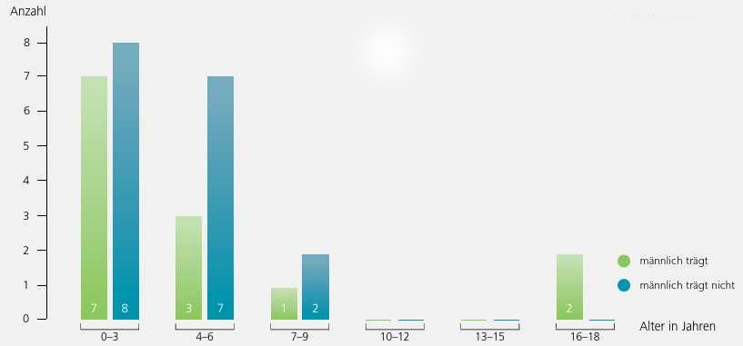 Beim vorliegenden Patientenkollektiv erfolgte die Erstversorgung in einem durchschnittlichen Alter von 4,6 Jahren. Insgesamt zeigt sich bei den 0- bis 3‑Jährigen eine höhere Akzeptanz als bei den 4- bis 6‑Jährigen, was die Forderung nach einem frühen Versorgungsbeginn unterstützt. Aber auch bei den 16- bis 18-jährigen Patienten ist eine gute Akzeptanz zu erkennen: Sie zeigten bei der Wahl der Prothese und des Behandlungsverlaufes größere Eigeninitiative und mehr Selbstbestimmung. Nach Heintels 29 und Berners 30 Erkenntnissen besteht kein Zusammenhang des Versorgungserfolges mit einer möglichst schnellen Versorgung. Vielmehr erhöhen sich die Möglichkeiten einer guten Akzeptanz, wenn der Patient auf eigenen Wunsch eine Versorgung erhält und bei jeder Entscheidung, die sie betrifft, miteinbezogen wird. Bei Kindern mit kongenitalen Fehlbildungen steht jedoch die Gewöhnung an eine prothetische Versorgung nach klassischen Richtlinien in frühem Alter im Vordergrund, um ein körperliches Gleichgewicht herzustellen, Fehlhaltungen vorzubeugen und die Aussichten auf eine Akzeptanz späterer Hilfsmittel zu erhöhen. Indem man ihnen alle Möglichkeiten der Versorgung frühzeitig darlegt, gibt man den Kindern die Möglichkeit, später selber Entscheidungen über eine Versorgung zu treffen.