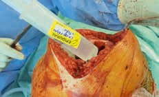 Die ersten klinischen Studien hierzu zeigten sehr vielversprechende Ergebnisse 6 7. Die lokale Infiltrationsanästhesie erfolgt durch den Operateur selbst. Dieser infiltriert sukzessive verschiedene Bereiche (dorsale Kapsel, Seitenbänder, Ligamentum patellae und Subkutangewebe) in drei verschiedenen Portionen. Ein Katheter wird intraartikulär positioniert, der am Abend und am nächsten Tag mit einer weiteren Gabe des oben genannten Schmerzcocktails bestückt wird. Nach der morgendlichen Gabe wird der Katheter entfernt. Ein Kompressionsverband mit großflächiger Kühlung mit Kühlelementen für vier bis sechs Stunden verlängert die Analgesiedauer.