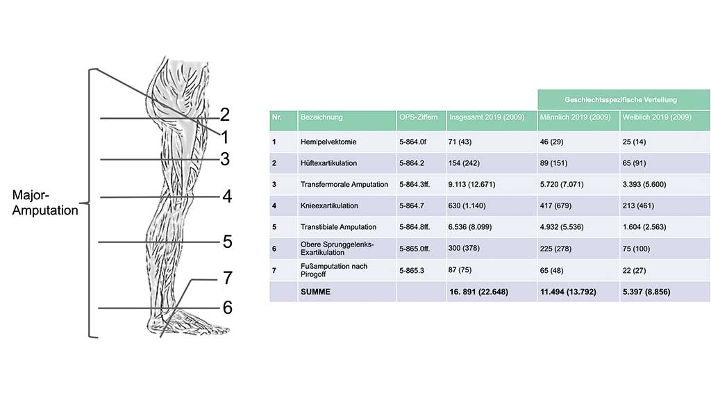 - Spoden M. Amputationen der unteren Extremität in Deutschland – Regionale Analyse mit Krankenhausabrechnungsdaten von 2011 bis 2015. Gesundheitswesen 2019; 81: 422–430