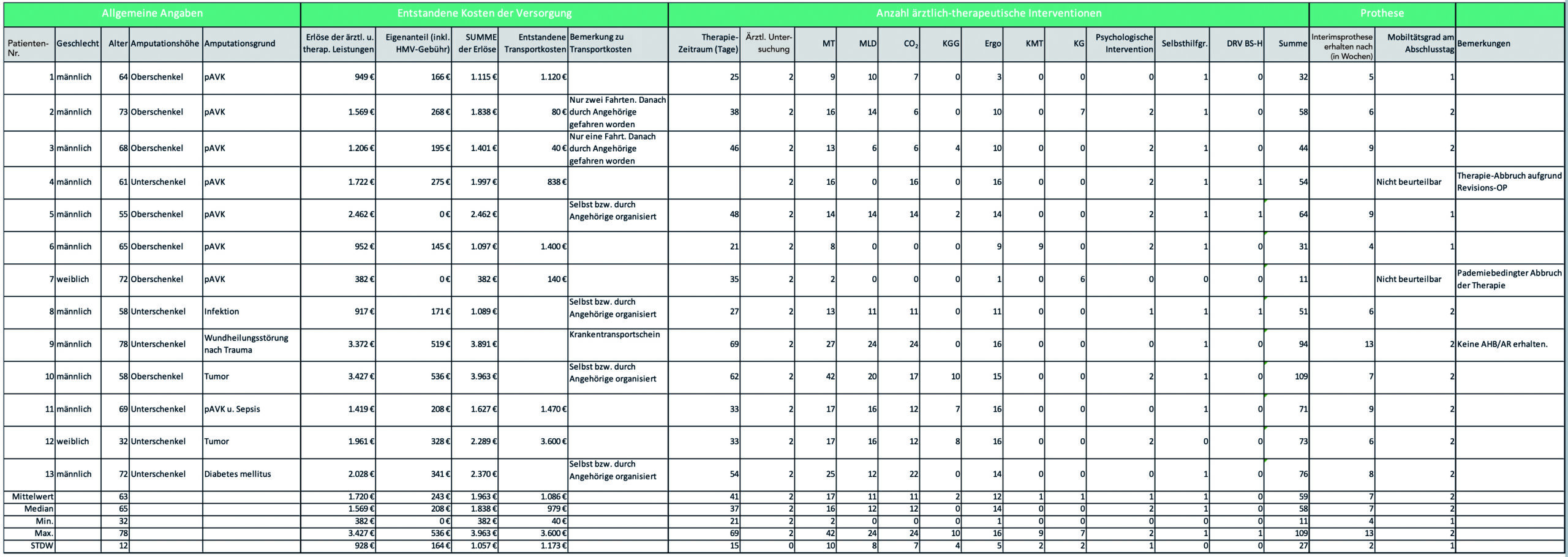 Andererseits lässt die Dauer des Behandlungszeitraums vermuten, dass eine Phase der Immobilisierung – wie durch die Verlegung nach Hause oder in die Kurzzeitpflege – massive Schäden bei den Amputierten erzeugen und unter Umständen auch zu einer dauerhaften Immobilität/Pflegebedürftigkeit führen kann.