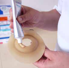 - Ölbäder, rückfettende Seifen, fetthaltige Substanzen wie Salben sowie Feuchtpflegetücher (ein öliger oder rückfettender Film auf der Haut kann den Halt der Stomaversorgung nicht gewährleisten)