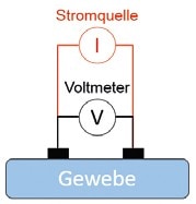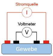 Wie man der Tabelle entnehmen kann, zeigen Gewebe mit einem erhöhten Wasser- und Elektrolytgehalt, z. B. Blut oder Blutplasma, einen niedrigen Widerstand einem elektrischen Strom gegenüber. Demgegenüber wirken Fettgewebe als Isolierungsschicht und weisen daher einen deutlich erhöhten spezifischen Widerstand auf. Das bedeutet, dass unterschiedliche Gewebe sich durch ihre entsprechenden elektrischen Eigenschaften und insbesondere mittels ihrer Leitfähigkeit analysieren lassen.