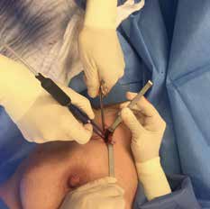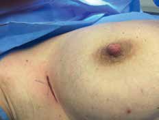Die Länge des Hautschnittes sollte dabei so lang wie nötig und so kurz wie möglich sein. Schnittführungen, die die vordere Axillarfalte überschreiten, sollten vermieden werden, da hierbei das erhöhte Risiko einer Narbenkontraktur mit Bewegungseinschränkung des Armes eingegangen wird. Das direkte Vorpräparieren bis auf die axilläre Faszie sollte gewebeschonend unter bipolarer Koagulation von Gefäßen erfolgen.