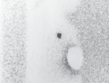 Vor der geplanten Operation wird der Sentinellymphknoten vom Facharzt für Nuklearmedizin markiert. Um den Tumor herum beziehungsweise subareolär quadrantenadaptiert wird eine radioaktiv angereicherte Flüssigkeit, die Tracersubstanz, gespritzt. Standardisiert werden dazu 40 MBq Tc-99m-Nanokolloid injiziert. Die Flüssigkeit verteilt sich in den Lymphgefäßen und wird zu den Lymphknoten transportiert, überwiegend in die axillären Lymphknoten. Dieses Abfließen der Flüssigkeit wird sequenziell über ca. 60 Minuten untersucht. Der Lymphknoten, der als Erster diese Substanz anreichert und speichert, ist der Sentinel. Mit einer Gammasonde kann die Lage des Lymphknotens detektiert und entsprechend auf der Haut markiert werden (Abb. 1). Die Dokumentation erfolgt mit einem Ausdruck des anreichernden Lymphknotens am sogenannten Hintergrund-Phantombild in zwei Ebenen (Abb. 2). Der Operateur verfügt über eine sterile Gammasonde, mit der er vor der OP und während des Eingriffs die Lage des Lymphknotens überprüfen kann.