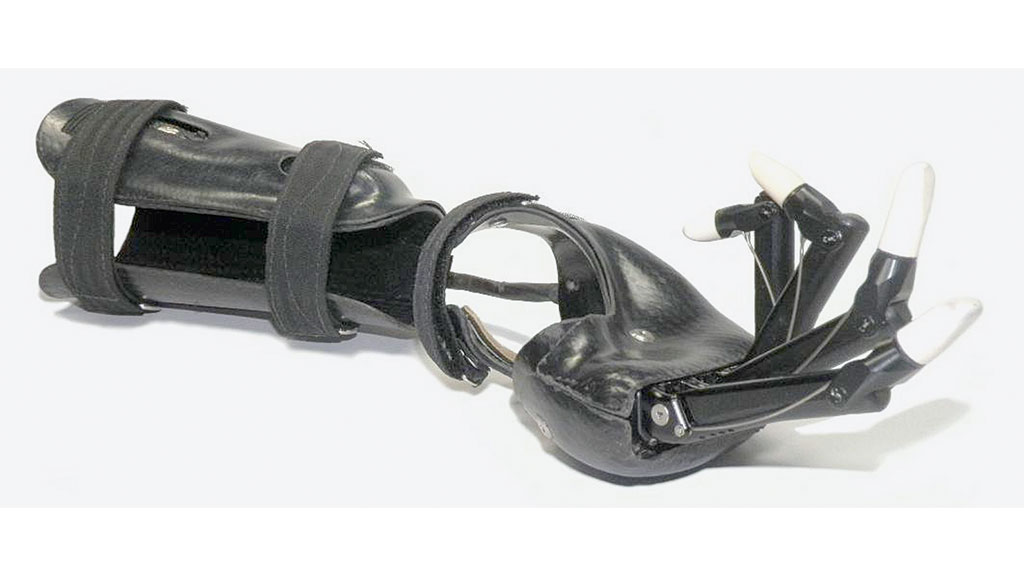 In Versorgungssituationen, bei denen ein Daumstumpf über nicht genügend Stumpflänge, Beweglichkeit oder andere Adaptionsmöglichkeiten für eine funktionelle Daumen-Kosmetik verfügt, kann mit einem mechanisch betätigten Daumen gearbeitet werden (Abb. 7).