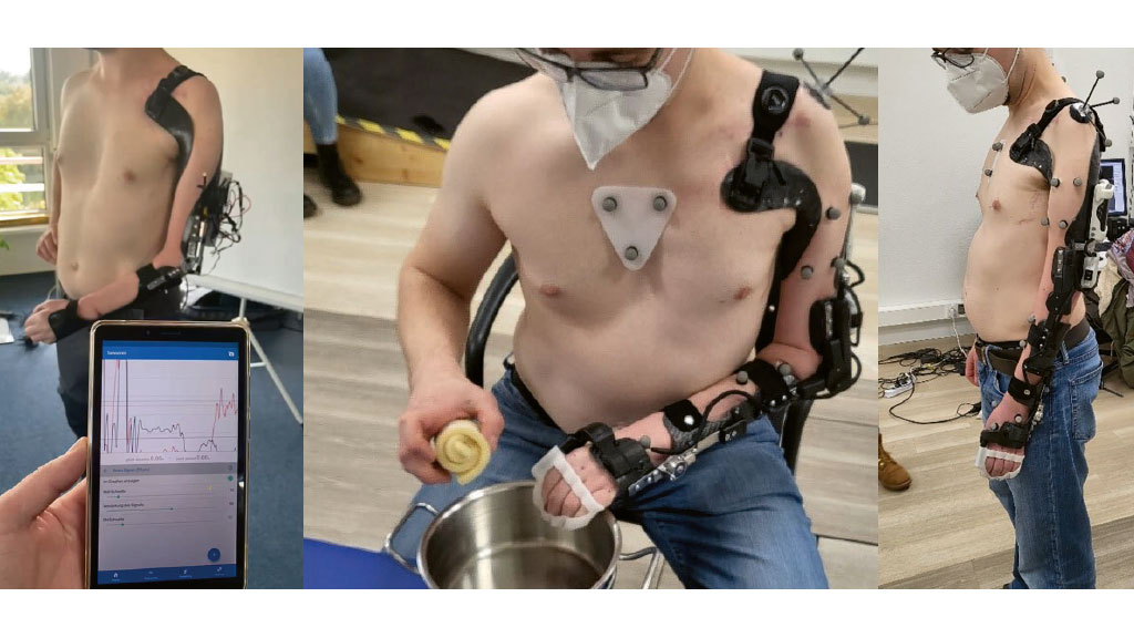 Die Entwicklung einer myoelektrischen, aktiven Orthese der oberen Extremität wird wissenschaftlich begleitet durch das BMBF-Verbundprojekt: „neo (neurorehabilitation exoskeletal orthosis) – sensorgesteuerte aktive Orthese für die obere Extremität“ (Abb. 3); das Projekt startete im April 2021. Vincent Systems entwickelt im Projekt die technischen Voraussetzungen, der klinische Partner, die BG Unfallklinik Ludwigshafen, führt derzeit eine 12-monatige klinische Studie mit bis zu 20 Patienten durch mit der Zielsetzung: „Klinische Evaluation der sensorgesteuerten aktiven Orthese für die obere Extremität bei Plexus brachialis Verletzungen bezüglich Funktionalität, Lebensqualität und Schmerzen und kortikaler Repräsentation.“ Der Projektpartner, die Charité-Universitätsklinik Berlin, verfolgt im Rahmen der Forschungsarbeiten die Zielstellung: „Klinische Validierung einer Hybriden Kortikoid-muskulär (durch Gehirnareale stimulierte Muskulatur) gesteuerten Orthese zur Wiederherstellung sensomotorischer Funktion.“ Der Schwerpunkt der Arbeiten liegt u. a. auf der Umsetzung alternativer Steuerungsstrategien mittels Biosignalen aus EOG und EEG. Zusammen mit dem Projektpartner Orthopädietechnik Brunner GmbH in Ludwigshafen (Christoph Hösch, Orthopädietechnikermeister) werden die Orthesen individuell angefertigt und die Anwender während der stationären Rehabilitation/Orthesengebrauchsschulung begleitet.
