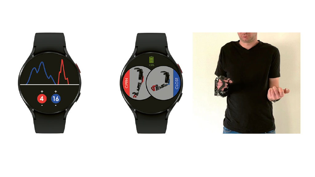 Mode 10: Controller-Agent-Steuerung. Bei Nichtvorhandensein von geeigneten Muskelsignalen kann die Steuerung über eine am unverletzten Arm getragene Smartwatch erfolgen. Es handelt sich dabei um eine Bewegungssteuerung. Dabei kann durch eine Geste die Steuerung ein- und ausgeschaltet werden. Nach der Aktivierung folgt die Orthese in ihren Bewegungen den Bewegungen des Handgelenks, an dem die Uhr getragen wird (Abb. 8).