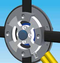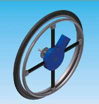 Die Krafteinleitung des Rollstuhlnutzers wird über den Greifring direkt auf den Drehmomentsensor übertragen. Die Aluminiumstreben vom Greifring zum Sensor (siehe Abb. 5) sind so ausgelegt, dass sie einen Langzeitbetrieb ohne bleibende Verformung überstehen und die Kraft direkt an den Sensor weiterleiten können. Somit kann die Messtechnik zentral an der Radnabe angebracht werden und hier durch eine Abdeckung vor Witterungseinflüssen geschützt werden.