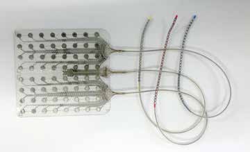 Neurotechnische Implantate werden zur Behandlung fortschreitender Erkrankungen wie Morbus Parkinson eingesetzt oder sollen Gehirnaktivitäten bei Epilepsie als Therapiemaßnahme verändern. Auch bei modernsten Bildgebungsverfahren bleibt stets eine Restunsicherheit über die Anatomie des einzelnen Patienten vor der Operation. Die erste Justierung der Neuroimplantate findet zunächst intraoperativ durch ihre Platzierung statt, danach elektronisch über eine Veränderung der Strompulse auf den ausgewählten Elektroden oder durch Umschalten auf einen anderen Kontakt auf dem Implantat. Ohne die spezifische Anatomie eines Patienten zu kennen, ist eine Implantation nur dann erfolgreich, wenn genügend Elektroden vorhanden sind, die nach der Operation elektronisch ausgewählt werden können (Abb. 2). Sind sie in so hoher Zahl vorhanden, dass eine Redundanz vorliegt, so kann ein intraoperatives Screening deutlich verkürzt werden. Gerade für Untersuchungen, bei denen nicht von vornherein klar ist, wo ein gewünschtes Signal auf der Großhirnrinde zu erwarten ist, wie bei der prächirurgischen Epilepsiediagnostik oder wenn es bei Gehirn-Computer-Schnittstellen durch die Plastizität im Gehirn aufgrund von Lernprozessen zu räumlichen Verschiebungen der Signale kommt, kann Redundanz bei Elektrodenkontakten die Lösung darstellen, auch langfristig die bestmöglichen Signale aufzunehmen 7. Die Herausforderung bei diesem Ansatz stellt die große Anzahl der Kontakte dar. Die Kontakte müssen über Zuleitungen mit einem Implantatgehäuse und der innenliegenden Aufnahmeelektronik verbunden werden. Zuverlässige miniaturisierte Gehäuse mit einer hohen Zahl elektrischer Durchführungen sind die unabdingbare Voraussetzung für diese Lösung.