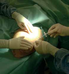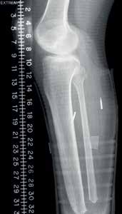 Zwei Beinamputierte wurden für eine IMES-Studie ausgewählt: ein Oberschenkelamputierter (TF = transfemoral) und ein Unterschenkelamputierter (TT = transtibial). Bei beiden Amputierten handelte es sich um erfahrene Anwender mit dem Aktivitätsgrad K3. Feine Drahtelektroden wurden verwendet, um zu überprüfen, dass von jedem Muskel bei einer willkürlich ausgelösten Kontraktion ein ausreichendes myoelektrisches Signal erfasst werden konnte. Zwei IMES-Sensoren wurden anschließend bei beiden Anwendern implantiert, beim oberschenkelamputierten Probanden in den Musculus biceps femoris und den Musculus vastus lateralis und beim unterschenkelamputierten Probanden in den Musculus tibialis anterior und den Musculus gastrocnemius. Jeder Eingriff dauerte etwa 30 Minuten und wurde unter lokaler Anästhesie und leichter Sedierung durchgeführt (Abb. 1). Beide Probanden wurden darum gebeten, bis zwei Wochen nach der Operation Unterarmgehstützen anstelle ihrer Prothesen zu verwenden, und es wurde ihnen eine vierwöchige Rehabilitationszeit gewährt, bevor mit den IMES-Tests begonnen wurde.