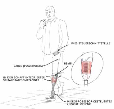 Die derzeitigen mikroprozessorgesteuerten Prothesen erfordern ein gewisses Training und sind nicht immer intuitiv für die Anwender. Sie haben zudem über mehrere Ebenen hinweg einen eingeschränkten Bewegungsumfang, bieten eine eingeschränkte oder keine aktive Kraftunterstützung und keine direkte willkürliche Steuerung. Mit anderen Worten weisen derzeitige Prothesen im Vergleich zur gesunden unteren Extremität zahlreiche Einschränkungen auf. Eine Mensch-Maschine-Schnittstelle, die sich des Gehirns bedient, kann einige dieser Einschränkungen überwinden, indem sie die leistungsfähigste Schaltzentrale der Welt anzapft, die in der Lage ist, komplexe Bewegungen zu steuern und gleichzeitig darüber nachzudenken, was es abends zu essen geben soll. Fortschrittliche Mensch-Maschine-Schnittstellen verwenden bioelektrische Signale, um eine direkte Verbindung zum Nervensystem aufzubauen und auf diese Weise das weltbeste Steuerzentrum zu nutzen – das Gehirn 6.